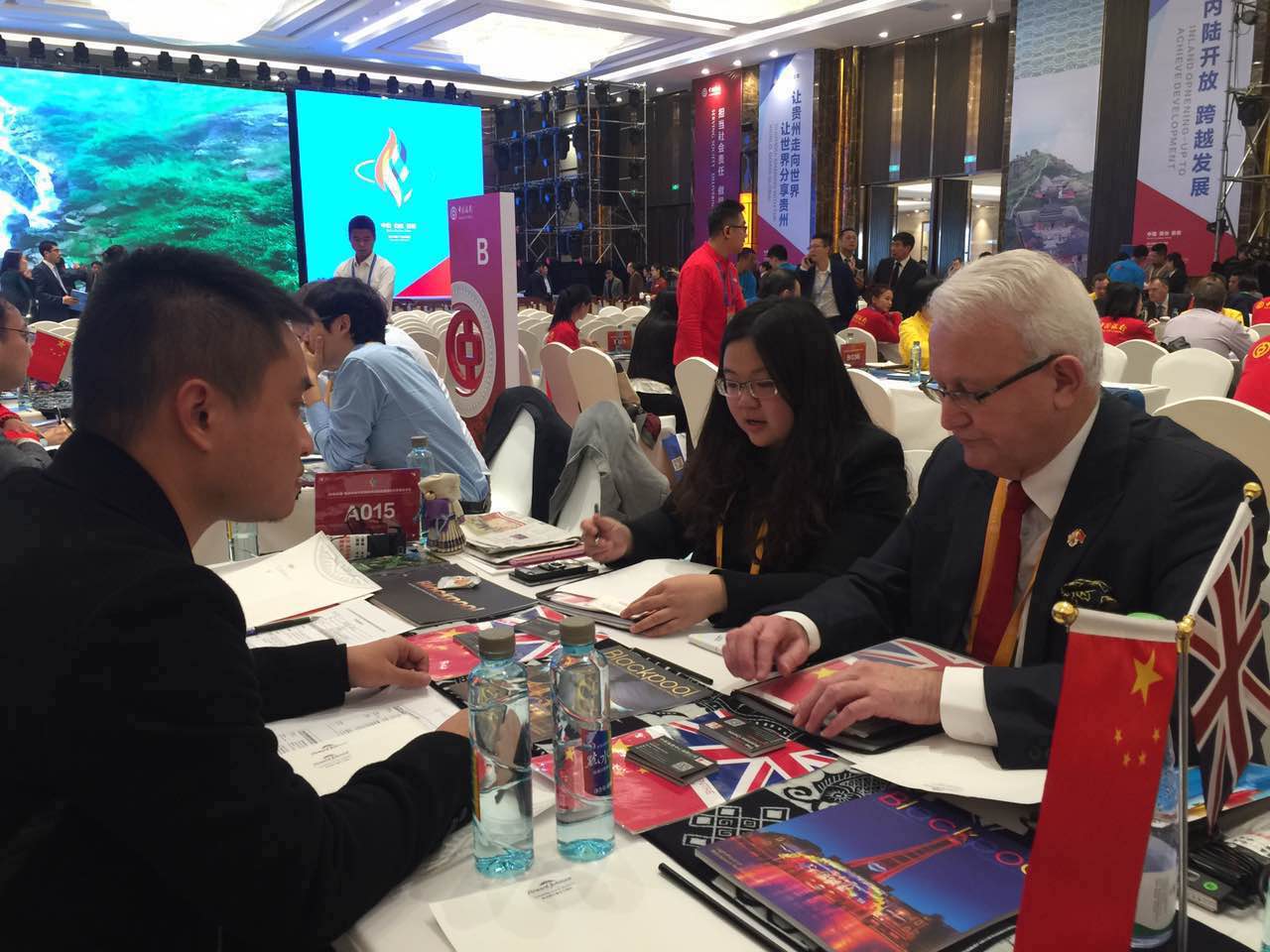 我公司董事长黄先生在2016年中国贵州内陆开放型经济试验区跨境投资贸易洽谈会上与英国商人就合作事宜进行商洽,成果显著,为我公司拓展海外业务打下了坚实的基础。