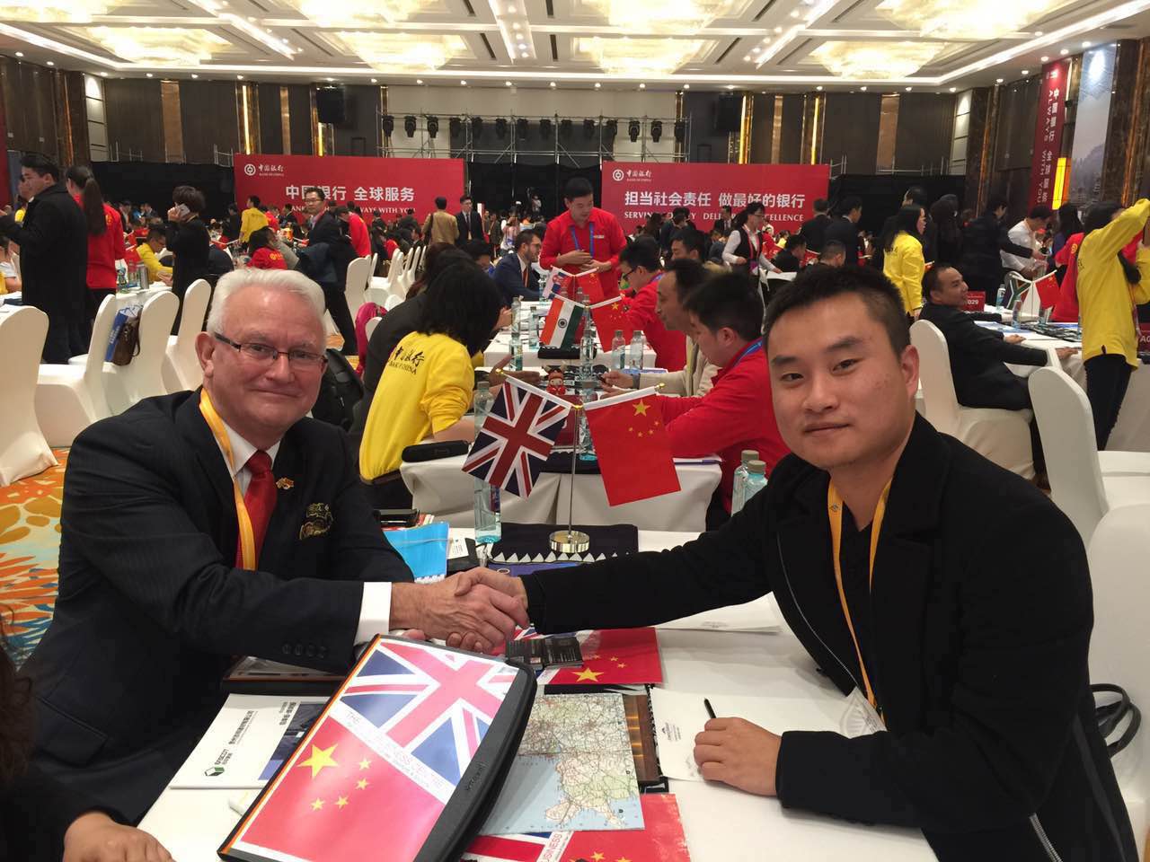 我公司董事长黄先生在2016年中国贵州内陆开放型经济试验区跨境投资贸易洽谈会上与英国商人就合作事宜进行商洽,成果显著,为我公司拓展海外业务打下了坚实的基础。