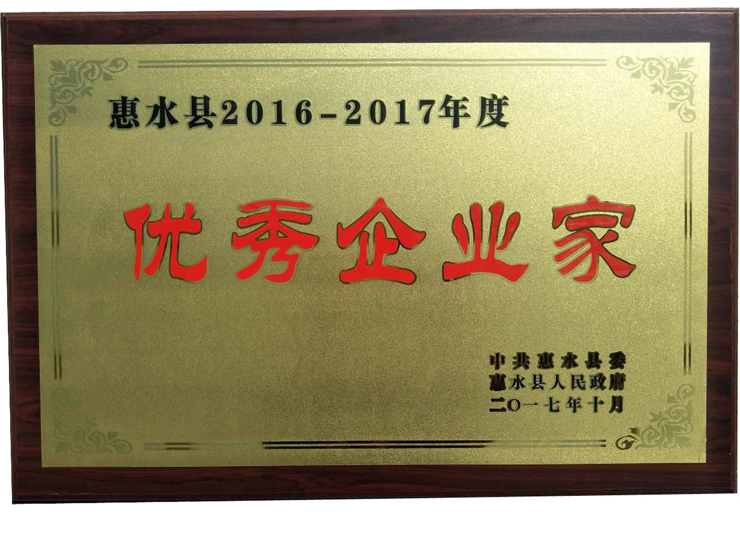 恭喜黄先生获得”优秀企业家“荣誉称号